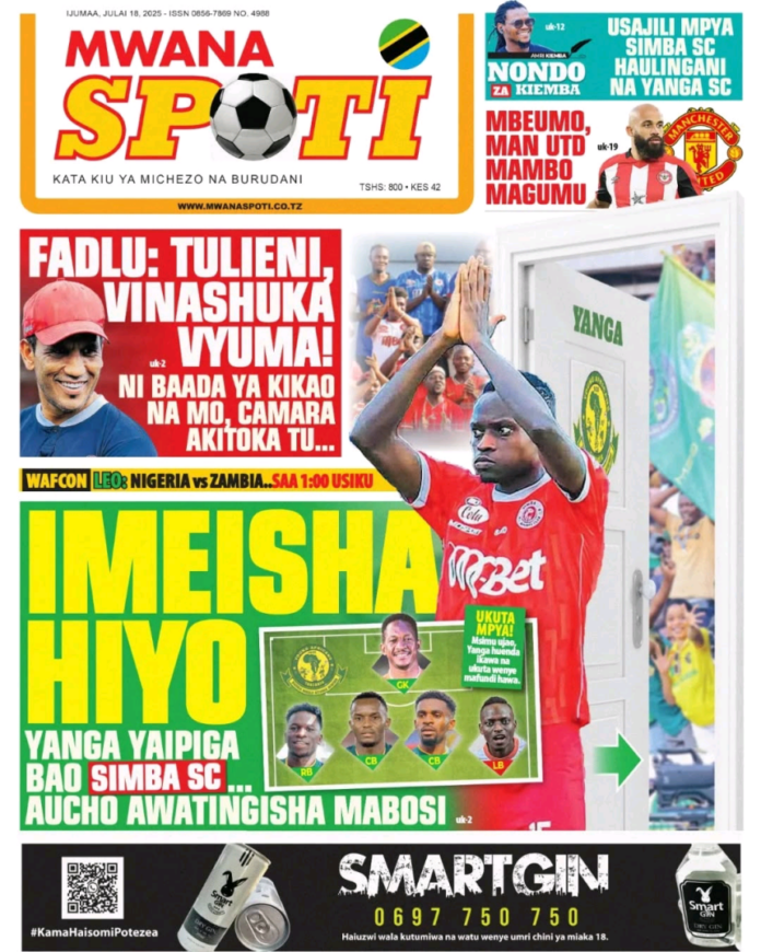 MAGAZETI YA TAARIFA ZA MICHEZO LEO TAREHE 18-7-2025