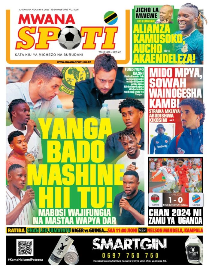 HomeMAGAZETI YA LEOMAGAZETI YA MICHEZO LEO JUMATATU TAREHE 4-8-2025 MAGAZETI YA LEO MAGAZETI YA MICHEZO LEO JUMATATU TAREHE 4-8-2025 By Chikao August 4, 2025 0 589 Share FacebookTwitterPinterestWhatsApp Habari mwanafamilia wa SokaLeo Pitia Kurasa za Magazeti ya michezo leo ya Aug 04, 2025 Share FacebookTwitterPinterestWhatsApp Previous articleYanga,Azam,Simba na Singida kupambania ngao ya jamii Septemba 14.Next articleYANGA SC HAWAPOI, KIUNGO WA KAZI MOHAMED DOUMBIA NDANI Chikaohttps://sokaleo.co.tz RELATED ARTICLES MAGAZETI YA LEO HAYA HAPA MAGAZETI YA LEO NOVEMBA 10, 2025 November 10, 2025 MAGAZETI YA LEO HAYA HAPA MAGAZETI YA LEO OKTOBA 8, 2025 October 8, 2025 MAGAZETI YA LEO HAYA HAPA MAGAZETI YA LEO OKTOBA 7, 2025 October 7, 2025 LEAVE A REPLY Cancel reply Comment: Please enter your comment! Name:* Please enter your name here Email:* You have entered an incorrect email address! Please enter your email address here Website: Save my name, email, and website in this browser for the next time I comment. Most Popular MANGUNGU: MABADILIKO YA BENCHI LA UFUNDI NDIO YALIIVURUGA SIMBA February 5, 2026 SALUM MAYANGA AKALIA KUTI KAVU MASHUJAA February 4, 2026 BENCHIKHA NA CHE MALONE WANALITAKA KOMBE January 27, 2026 JAYRUTTY KUMSHUSHA MCHEZAJI GANI KWA WAKATI HUU?? January 11, 2026 Load more Recent Comments Chikao on Majina ya Usaili kusimamia uchaguzi 2025 – Tume ya uchaguzi Renatha on Majina ya Usaili kusimamia uchaguzi 2025 – Tume ya uchaguzi Renatha on Majina ya Usaili kusimamia uchaguzi 2025 – Tume ya uchaguzi Grace Werema on Majina ya Usaili kusimamia uchaguzi 2025 – Tume ya uchaguzi Goba jr on SERIKALI YATOA KAULI JUU YA SAKATA LA PAMBA JIJI KUFANYA MAZOEZI GIZANI Goba jr on MAYELE AANDIKA HISTORIA MPYA PYRAMID, BAADA YA KUIFUNGIA HAT-TRICK Goba jr on WAYNE ROONEY: SIMCHUKII RONALDO, LAKINI MESSI NI BORA Seif on Majina ya Waliochaguliwa Kusimamia Uchaguzi Temeke 2025 GAMRAJ on HIKI HAPA KIKOSI RASMI CHA SIMBA SC 2025/26 ALLY RAJABU ADAMU on Yanga SC vs Simba SC zimebaki siku tatu Wanted on STARS ICHEZE UWANJANI MASHABIKI WACHEZE JUKWAAMI yusters on PITIA MAGAZETI YA MICHEZO LEO TAREHE 21 AGOSTI 2025 Web Development Company in Kochi,Kerala on NEYMAR AMWAGA MACHOZI AKIKUTANA NA KIPIGO KIKUBWA ZAIDI KWAKE Agustino on NAMBA 8 MPYA WA YANGA SC LASSINE ANATAKA KUTEMBEZA 5G MAGAZETI YA MICHEZO LEO ALHAMISI TAREHE 24-7-2025 - SOKALEO on RASMI: YANGA YAMNASA CASEMIRO WA ZANZIBAR KUTOKA MLANDEGE! CV YA MOUSSA BALLA CONTE, MCHEZAJI MPYA WA YANGA SC 2025/2026 - SOKALEO on TETESI: KAPOMBE BADO YUPO SANA SIMBA, AMWAGA WINGO UPYA Stanley kitendya on TETESI ZA USAJILI SIMBA LEO 2025/26 Benard kayingo on FADLU DAVIDS ATAJA NI WACHEZAJI GANI WATABAKI SIMBA JELADI CHINDO on TETESI ZA USAJILI SIMBA LEO 2025/26 JELADI CHINDO on TETESI ZA USAJILI SIMBA LEO 2025/26 Paulo Kimonga on TETESI ZA USAJILI SIMBA LEO 2025/26 Yahaya kingaz omari on KAIZER CHEIF WAWEKA MZIGO KUMPATA AHOUA bangla Khobor Kolkata on TFF YATOA MAELEKEZO KWA WAGOMBEA WA UCHAGUZI MKUU 2025 muppu on YANGA YAIJIBU TFF, DAWA YA DENI NI KULIPA KWA WAKATI go now on BEKI WA KAZI SIMBA SC KAMILI KUWAKABILI RS BERKANE MEI 25 2025