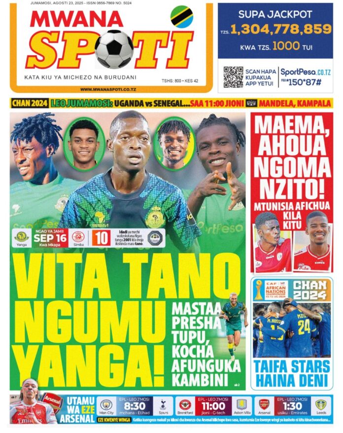 HomeMAGAZETI YA LEOPITIA MAGAZETI YA MICHEZO LEO TAREHE 23 AGOSTI 2025 MAGAZETI YA LEO PITIA MAGAZETI YA MICHEZO LEO TAREHE 23 AGOSTI 2025 By Chikao August 23, 2025 0 730 Share FacebookTwitterPinterestWhatsApp Share FacebookTwitterPinterestWhatsApp Previous articleSINGIDA BLACK STARS YALIPIGA CHINI TAMASHA LAO LA ‘SINGIDA BIG DAY’Next articleEberechi Eze na Arsenal jambo limekwiva. Chikaohttps://sokaleo.co.tz RELATED ARTICLES MAGAZETI YA LEO HAYA HAPA MAGAZETI YA LEO NOVEMBA 10, 2025 November 10, 2025 MAGAZETI YA LEO HAYA HAPA MAGAZETI YA LEO OKTOBA 8, 2025 October 8, 2025 MAGAZETI YA LEO HAYA HAPA MAGAZETI YA LEO OKTOBA 7, 2025 October 7, 2025 LEAVE A REPLY Cancel reply Comment: Please enter your comment! Name:* Please enter your name here Email:* You have entered an incorrect email address! Please enter your email address here Website: Save my name, email, and website in this browser for the next time I comment. Most Popular SALUM MAYANGA AKALIA KUTI KAVU MASHUJAA February 4, 2026 BENCHIKHA NA CHE MALONE WANALITAKA KOMBE January 27, 2026 JAYRUTTY KUMSHUSHA MCHEZAJI GANI KWA WAKATI HUU?? January 11, 2026 SIMBA MBONI KUMALIZANA NA BEKI HUYU WA KAZI KUTOKA AL HILAL January 11, 2026 Load more Recent Comments Chikao on Majina ya Usaili kusimamia uchaguzi 2025 – Tume ya uchaguzi Renatha on Majina ya Usaili kusimamia uchaguzi 2025 – Tume ya uchaguzi Renatha on Majina ya Usaili kusimamia uchaguzi 2025 – Tume ya uchaguzi Grace Werema on Majina ya Usaili kusimamia uchaguzi 2025 – Tume ya uchaguzi Goba jr on SERIKALI YATOA KAULI JUU YA SAKATA LA PAMBA JIJI KUFANYA MAZOEZI GIZANI Goba jr on MAYELE AANDIKA HISTORIA MPYA PYRAMID, BAADA YA KUIFUNGIA HAT-TRICK Goba jr on WAYNE ROONEY: SIMCHUKII RONALDO, LAKINI MESSI NI BORA Seif on Majina ya Waliochaguliwa Kusimamia Uchaguzi Temeke 2025 GAMRAJ on HIKI HAPA KIKOSI RASMI CHA SIMBA SC 2025/26 ALLY RAJABU ADAMU on Yanga SC vs Simba SC zimebaki siku tatu Wanted on STARS ICHEZE UWANJANI MASHABIKI WACHEZE JUKWAAMI yusters on PITIA MAGAZETI YA MICHEZO LEO TAREHE 21 AGOSTI 2025 Web Development Company in Kochi,Kerala on NEYMAR AMWAGA MACHOZI AKIKUTANA NA KIPIGO KIKUBWA ZAIDI KWAKE Agustino on NAMBA 8 MPYA WA YANGA SC LASSINE ANATAKA KUTEMBEZA 5G MAGAZETI YA MICHEZO LEO ALHAMISI TAREHE 24-7-2025 - SOKALEO on RASMI: YANGA YAMNASA CASEMIRO WA ZANZIBAR KUTOKA MLANDEGE! CV YA MOUSSA BALLA CONTE, MCHEZAJI MPYA WA YANGA SC 2025/2026 - SOKALEO on TETESI: KAPOMBE BADO YUPO SANA SIMBA, AMWAGA WINGO UPYA Stanley kitendya on TETESI ZA USAJILI SIMBA LEO 2025/26 Benard kayingo on FADLU DAVIDS ATAJA NI WACHEZAJI GANI WATABAKI SIMBA JELADI CHINDO on TETESI ZA USAJILI SIMBA LEO 2025/26 JELADI CHINDO on TETESI ZA USAJILI SIMBA LEO 2025/26 Paulo Kimonga on TETESI ZA USAJILI SIMBA LEO 2025/26 Yahaya kingaz omari on KAIZER CHEIF WAWEKA MZIGO KUMPATA AHOUA bangla Khobor Kolkata on TFF YATOA MAELEKEZO KWA WAGOMBEA WA UCHAGUZI MKUU 2025 muppu on YANGA YAIJIBU TFF, DAWA YA DENI NI KULIPA KWA WAKATI go now on BEKI WA KAZI SIMBA SC KAMILI KUWAKABILI RS BERKANE MEI 25 2025