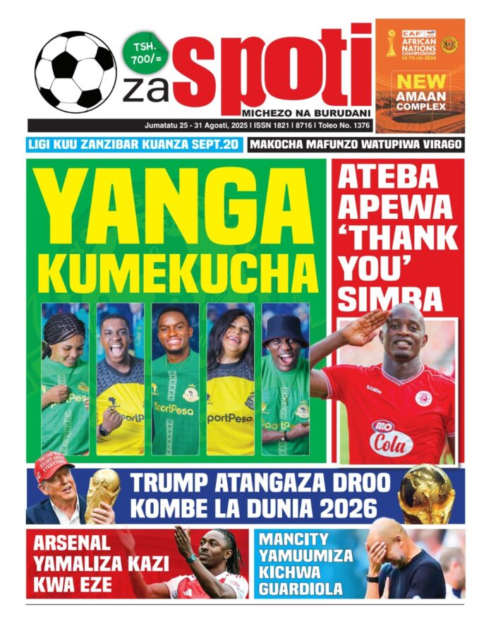 HomeMAGAZETI YA LEOPITIA MAGAZETI YA MICHEZO LEO TAREHE 25 AGOSTI 2025 MAGAZETI YA LEO PITIA MAGAZETI YA MICHEZO LEO TAREHE 25 AGOSTI 2025 By Chikao August 25, 2025 0 1055 Share FacebookTwitterPinterestWhatsApp Share FacebookTwitterPinterestWhatsApp Previous articleDROO YA KOMBE LA DUNIA KUFANYIKA DISEMBA 5 NCHINI MAREKANINext articleYANGA SC YAANZA KUISOMA SIMBA SC KUELEKEA KARIAKOO DABI Chikaohttps://sokaleo.co.tz RELATED ARTICLES MAGAZETI YA LEO HAYA HAPA MAGAZETI YA LEO NOVEMBA 10, 2025 November 10, 2025 MAGAZETI YA LEO HAYA HAPA MAGAZETI YA LEO OKTOBA 8, 2025 October 8, 2025 MAGAZETI YA LEO HAYA HAPA MAGAZETI YA LEO OKTOBA 7, 2025 October 7, 2025 LEAVE A REPLY Cancel reply Comment: Please enter your comment! Name:* Please enter your name here Email:* You have entered an incorrect email address! Please enter your email address here Website: Save my name, email, and website in this browser for the next time I comment. Most Popular SALUM MAYANGA AKALIA KUTI KAVU MASHUJAA February 4, 2026 BENCHIKHA NA CHE MALONE WANALITAKA KOMBE January 27, 2026 JAYRUTTY KUMSHUSHA MCHEZAJI GANI KWA WAKATI HUU?? January 11, 2026 SIMBA MBONI KUMALIZANA NA BEKI HUYU WA KAZI KUTOKA AL HILAL January 11, 2026 Load more Recent Comments Chikao on Majina ya Usaili kusimamia uchaguzi 2025 – Tume ya uchaguzi Renatha on Majina ya Usaili kusimamia uchaguzi 2025 – Tume ya uchaguzi Renatha on Majina ya Usaili kusimamia uchaguzi 2025 – Tume ya uchaguzi Grace Werema on Majina ya Usaili kusimamia uchaguzi 2025 – Tume ya uchaguzi Goba jr on SERIKALI YATOA KAULI JUU YA SAKATA LA PAMBA JIJI KUFANYA MAZOEZI GIZANI Goba jr on MAYELE AANDIKA HISTORIA MPYA PYRAMID, BAADA YA KUIFUNGIA HAT-TRICK Goba jr on WAYNE ROONEY: SIMCHUKII RONALDO, LAKINI MESSI NI BORA Seif on Majina ya Waliochaguliwa Kusimamia Uchaguzi Temeke 2025 GAMRAJ on HIKI HAPA KIKOSI RASMI CHA SIMBA SC 2025/26 ALLY RAJABU ADAMU on Yanga SC vs Simba SC zimebaki siku tatu Wanted on STARS ICHEZE UWANJANI MASHABIKI WACHEZE JUKWAAMI yusters on PITIA MAGAZETI YA MICHEZO LEO TAREHE 21 AGOSTI 2025 Web Development Company in Kochi,Kerala on NEYMAR AMWAGA MACHOZI AKIKUTANA NA KIPIGO KIKUBWA ZAIDI KWAKE Agustino on NAMBA 8 MPYA WA YANGA SC LASSINE ANATAKA KUTEMBEZA 5G MAGAZETI YA MICHEZO LEO ALHAMISI TAREHE 24-7-2025 - SOKALEO on RASMI: YANGA YAMNASA CASEMIRO WA ZANZIBAR KUTOKA MLANDEGE! CV YA MOUSSA BALLA CONTE, MCHEZAJI MPYA WA YANGA SC 2025/2026 - SOKALEO on TETESI: KAPOMBE BADO YUPO SANA SIMBA, AMWAGA WINGO UPYA Stanley kitendya on TETESI ZA USAJILI SIMBA LEO 2025/26 Benard kayingo on FADLU DAVIDS ATAJA NI WACHEZAJI GANI WATABAKI SIMBA JELADI CHINDO on TETESI ZA USAJILI SIMBA LEO 2025/26 JELADI CHINDO on TETESI ZA USAJILI SIMBA LEO 2025/26 Paulo Kimonga on TETESI ZA USAJILI SIMBA LEO 2025/26 Yahaya kingaz omari on KAIZER CHEIF WAWEKA MZIGO KUMPATA AHOUA bangla Khobor Kolkata on TFF YATOA MAELEKEZO KWA WAGOMBEA WA UCHAGUZI MKUU 2025 muppu on YANGA YAIJIBU TFF, DAWA YA DENI NI KULIPA KWA WAKATI go now on BEKI WA KAZI SIMBA SC KAMILI KUWAKABILI RS BERKANE MEI 25 2025