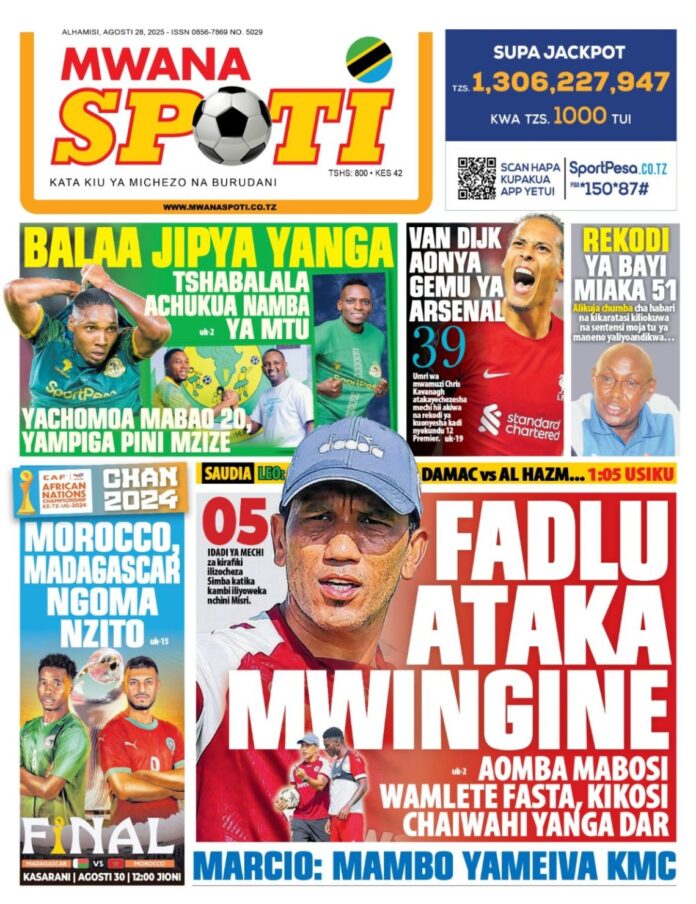 HomeMAGAZETI YA LEOPITIA MAGAZETI YA MICHEZO LEO TAREHE 28 AGOSTI 2025 MAGAZETI YA LEO PITIA MAGAZETI YA MICHEZO LEO TAREHE 28 AGOSTI 2025 By Chikao August 28, 2025 0 834 Share FacebookTwitterPinterestWhatsApp Share FacebookTwitterPinterestWhatsApp Previous articleOle ndiyo mshambuliaji bora wa FergieNext articleHUYU HAPA ATAJWA KUANDALIWA KUBEBA MIKOBA YA ZIMBWE JR SIMBA SC Chikaohttps://sokaleo.co.tz RELATED ARTICLES MAGAZETI YA LEO HAYA HAPA MAGAZETI YA LEO NOVEMBA 10, 2025 November 10, 2025 MAGAZETI YA LEO HAYA HAPA MAGAZETI YA LEO OKTOBA 8, 2025 October 8, 2025 MAGAZETI YA LEO HAYA HAPA MAGAZETI YA LEO OKTOBA 7, 2025 October 7, 2025 LEAVE A REPLY Cancel reply Comment: Please enter your comment! Name:* Please enter your name here Email:* You have entered an incorrect email address! Please enter your email address here Website: Save my name, email, and website in this browser for the next time I comment. Most Popular MANGUNGU: MABADILIKO YA BENCHI LA UFUNDI NDIO YALIIVURUGA SIMBA February 5, 2026 SALUM MAYANGA AKALIA KUTI KAVU MASHUJAA February 4, 2026 BENCHIKHA NA CHE MALONE WANALITAKA KOMBE January 27, 2026 JAYRUTTY KUMSHUSHA MCHEZAJI GANI KWA WAKATI HUU?? January 11, 2026 Load more Recent Comments Chikao on Majina ya Usaili kusimamia uchaguzi 2025 – Tume ya uchaguzi Renatha on Majina ya Usaili kusimamia uchaguzi 2025 – Tume ya uchaguzi Renatha on Majina ya Usaili kusimamia uchaguzi 2025 – Tume ya uchaguzi Grace Werema on Majina ya Usaili kusimamia uchaguzi 2025 – Tume ya uchaguzi Goba jr on SERIKALI YATOA KAULI JUU YA SAKATA LA PAMBA JIJI KUFANYA MAZOEZI GIZANI Goba jr on MAYELE AANDIKA HISTORIA MPYA PYRAMID, BAADA YA KUIFUNGIA HAT-TRICK Goba jr on WAYNE ROONEY: SIMCHUKII RONALDO, LAKINI MESSI NI BORA Seif on Majina ya Waliochaguliwa Kusimamia Uchaguzi Temeke 2025 GAMRAJ on HIKI HAPA KIKOSI RASMI CHA SIMBA SC 2025/26 ALLY RAJABU ADAMU on Yanga SC vs Simba SC zimebaki siku tatu Wanted on STARS ICHEZE UWANJANI MASHABIKI WACHEZE JUKWAAMI yusters on PITIA MAGAZETI YA MICHEZO LEO TAREHE 21 AGOSTI 2025 Web Development Company in Kochi,Kerala on NEYMAR AMWAGA MACHOZI AKIKUTANA NA KIPIGO KIKUBWA ZAIDI KWAKE Agustino on NAMBA 8 MPYA WA YANGA SC LASSINE ANATAKA KUTEMBEZA 5G MAGAZETI YA MICHEZO LEO ALHAMISI TAREHE 24-7-2025 - SOKALEO on RASMI: YANGA YAMNASA CASEMIRO WA ZANZIBAR KUTOKA MLANDEGE! CV YA MOUSSA BALLA CONTE, MCHEZAJI MPYA WA YANGA SC 2025/2026 - SOKALEO on TETESI: KAPOMBE BADO YUPO SANA SIMBA, AMWAGA WINGO UPYA Stanley kitendya on TETESI ZA USAJILI SIMBA LEO 2025/26 Benard kayingo on FADLU DAVIDS ATAJA NI WACHEZAJI GANI WATABAKI SIMBA JELADI CHINDO on TETESI ZA USAJILI SIMBA LEO 2025/26 JELADI CHINDO on TETESI ZA USAJILI SIMBA LEO 2025/26 Paulo Kimonga on TETESI ZA USAJILI SIMBA LEO 2025/26 Yahaya kingaz omari on KAIZER CHEIF WAWEKA MZIGO KUMPATA AHOUA bangla Khobor Kolkata on TFF YATOA MAELEKEZO KWA WAGOMBEA WA UCHAGUZI MKUU 2025 muppu on YANGA YAIJIBU TFF, DAWA YA DENI NI KULIPA KWA WAKATI go now on BEKI WA KAZI SIMBA SC KAMILI KUWAKABILI RS BERKANE MEI 25 2025