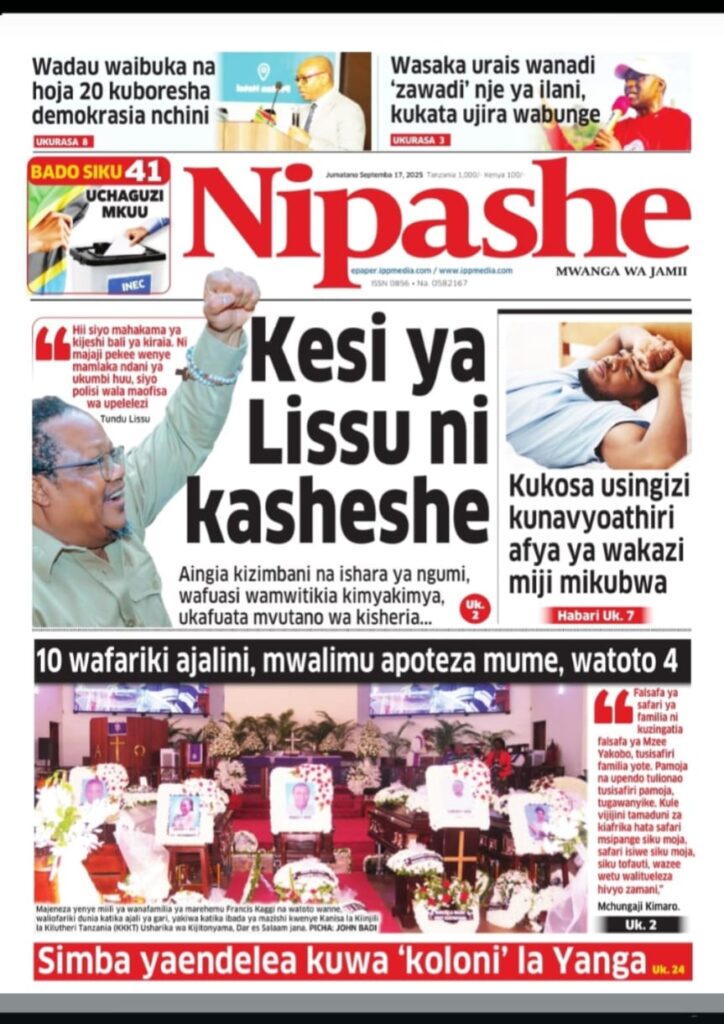 Share WhatsApp Facebook Telegram Twitter Pinterest Email Habari kubwa katika Magazeti ya leo Septemba 17, 2025 Habari, Karibu katika blog yako bora ya habari za michezo ya Sokaleo kwa kuianza asubuhi kwa habari, Tazama vichwa vya habari katika Magazeti ya leo septemba 17, 2025