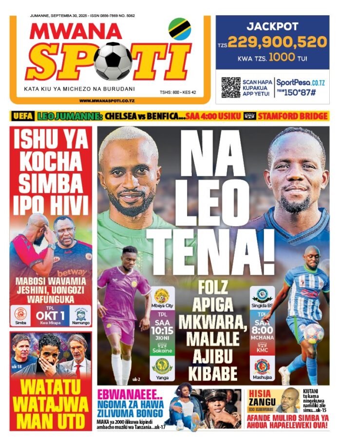 HomeKIMATAIFAHAYA HAPA MAGAZETI YA LEO SEPTEMBA 30, 2025 KIMATAIFA HAYA HAPA MAGAZETI YA LEO SEPTEMBA 30, 2025 By Chikao September 30, 2025 0 425 Share FacebookTwitterPinterestWhatsApp Share FacebookTwitterPinterestWhatsApp Previous articleMOROCCO APEWA THANK YOU BAADA YA MECHI MOJA TUNext articleWAJUE WAPINZANI WA SIMBA MECHI INAYOFUATA CAF Chikaohttps://sokaleo.co.tz RELATED ARTICLES KIMATAIFA BENCHIKHA NA CHE MALONE WANALITAKA KOMBE January 27, 2026 KIMATAIFA Hiba Abouk Aomba Msamaha kwa Achraf Hakimi Baada ya Talaka, Mashaka Kuhusu Sababu Za Nje December 27, 2025 KIMATAIFA Miaka 3 baada ya kuuzwa Everton, James Garner kurejea Man U December 27, 2025 LEAVE A REPLY Cancel reply Comment: Please enter your comment! Name:* Please enter your name here Email:* You have entered an incorrect email address! Please enter your email address here Website: Save my name, email, and website in this browser for the next time I comment. Most Popular MANGUNGU: MABADILIKO YA BENCHI LA UFUNDI NDIO YALIIVURUGA SIMBA February 5, 2026 SALUM MAYANGA AKALIA KUTI KAVU MASHUJAA February 4, 2026 BENCHIKHA NA CHE MALONE WANALITAKA KOMBE January 27, 2026 JAYRUTTY KUMSHUSHA MCHEZAJI GANI KWA WAKATI HUU?? January 11, 2026 Load more Recent Comments Chikao on Majina ya Usaili kusimamia uchaguzi 2025 – Tume ya uchaguzi Renatha on Majina ya Usaili kusimamia uchaguzi 2025 – Tume ya uchaguzi Renatha on Majina ya Usaili kusimamia uchaguzi 2025 – Tume ya uchaguzi Grace Werema on Majina ya Usaili kusimamia uchaguzi 2025 – Tume ya uchaguzi Goba jr on SERIKALI YATOA KAULI JUU YA SAKATA LA PAMBA JIJI KUFANYA MAZOEZI GIZANI Goba jr on MAYELE AANDIKA HISTORIA MPYA PYRAMID, BAADA YA KUIFUNGIA HAT-TRICK Goba jr on WAYNE ROONEY: SIMCHUKII RONALDO, LAKINI MESSI NI BORA Seif on Majina ya Waliochaguliwa Kusimamia Uchaguzi Temeke 2025 GAMRAJ on HIKI HAPA KIKOSI RASMI CHA SIMBA SC 2025/26 ALLY RAJABU ADAMU on Yanga SC vs Simba SC zimebaki siku tatu Wanted on STARS ICHEZE UWANJANI MASHABIKI WACHEZE JUKWAAMI yusters on PITIA MAGAZETI YA MICHEZO LEO TAREHE 21 AGOSTI 2025 Web Development Company in Kochi,Kerala on NEYMAR AMWAGA MACHOZI AKIKUTANA NA KIPIGO KIKUBWA ZAIDI KWAKE Agustino on NAMBA 8 MPYA WA YANGA SC LASSINE ANATAKA KUTEMBEZA 5G MAGAZETI YA MICHEZO LEO ALHAMISI TAREHE 24-7-2025 - SOKALEO on RASMI: YANGA YAMNASA CASEMIRO WA ZANZIBAR KUTOKA MLANDEGE! CV YA MOUSSA BALLA CONTE, MCHEZAJI MPYA WA YANGA SC 2025/2026 - SOKALEO on TETESI: KAPOMBE BADO YUPO SANA SIMBA, AMWAGA WINGO UPYA Stanley kitendya on TETESI ZA USAJILI SIMBA LEO 2025/26 Benard kayingo on FADLU DAVIDS ATAJA NI WACHEZAJI GANI WATABAKI SIMBA JELADI CHINDO on TETESI ZA USAJILI SIMBA LEO 2025/26 JELADI CHINDO on TETESI ZA USAJILI SIMBA LEO 2025/26 Paulo Kimonga on TETESI ZA USAJILI SIMBA LEO 2025/26 Yahaya kingaz omari on KAIZER CHEIF WAWEKA MZIGO KUMPATA AHOUA bangla Khobor Kolkata on TFF YATOA MAELEKEZO KWA WAGOMBEA WA UCHAGUZI MKUU 2025 muppu on YANGA YAIJIBU TFF, DAWA YA DENI NI KULIPA KWA WAKATI go now on BEKI WA KAZI SIMBA SC KAMILI KUWAKABILI RS BERKANE MEI 25 2025